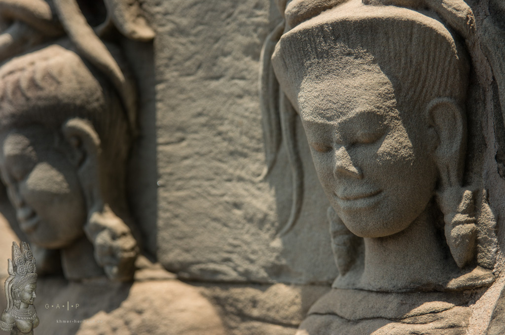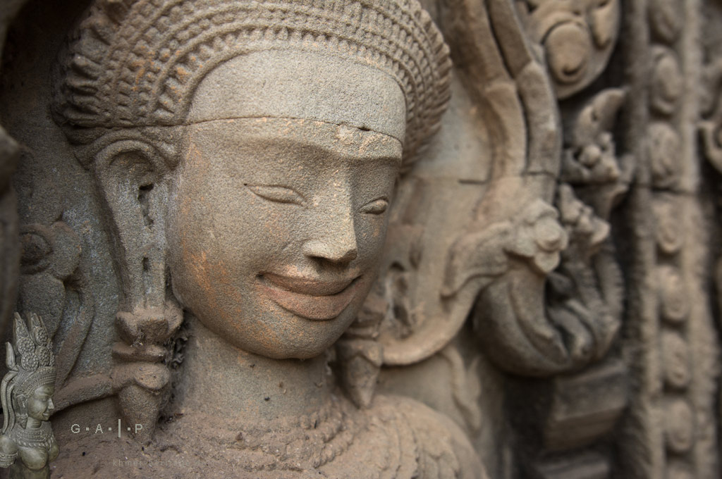 Allein in Angkor Wat befinden sich annähernd zweitausend Flachreliefs dieser detailierten Apsara und Devata Portraits. Aber selbst kleinere Tempel können ohne weiteres mehr als hundert dieser beeindruckenden Darstellungen aufweisen.